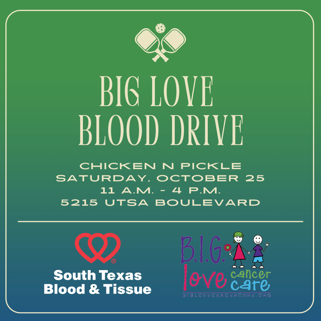 To find more information or to schedule a donation visit SouthTexasBlood.org/BigLove or call 210-731-5590.